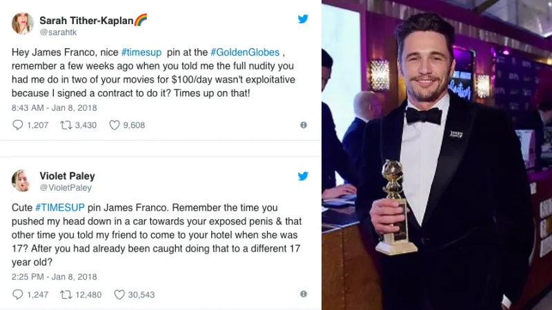 Both Sarah Tither-Kaplan and Violet Paley called Franco a hypocrite for wearing a #TimesUp pin to the Golden Globes ceremony earlier on Monday (8th January). It “was like a slap in my face,” Tither-Kaplan told The Los Angeles Times. Tither-Kaplan was a former student at Franco’s Studio 4 school in North Hollywood.