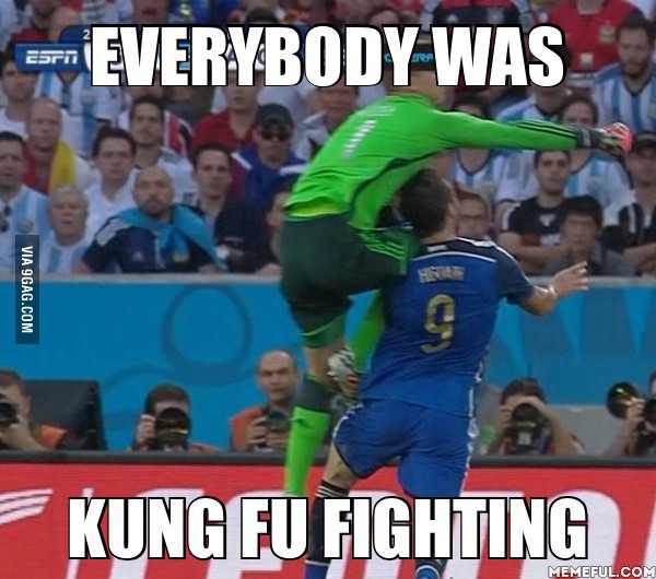 During the second half of the match, German goalkeeper Manuel Neuer kneed Gonzalo Higuain unintentionally when he tried to punch the ball away from the goal. As Higuain writhed in pain on the field, he was called for a foul even though it’s an unintentional knee kick from Neuer. Though it was deemed as an unfair foul, that moment has generated a series of meme, with different angles of the picture.