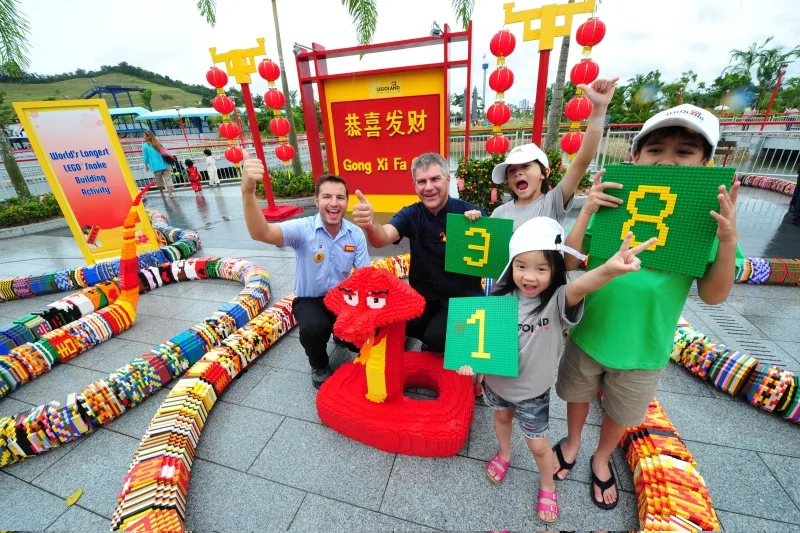 LEGOLAND® Malaysia slithered into the LEGO® history books today and set a new record by completing a challenge to build the world’s longest LEGO Snake. The snake was officially measured at 318 metres. It was built using more than one million LEGO bricks to celebrate LEGOLAND Malaysia’s first Chinese New Year and the Year the Snake.
