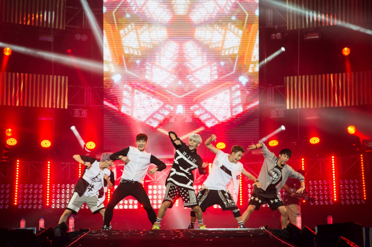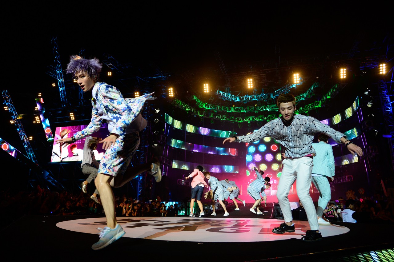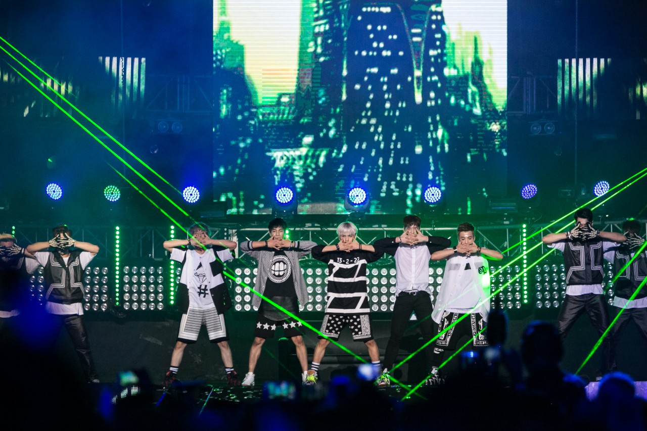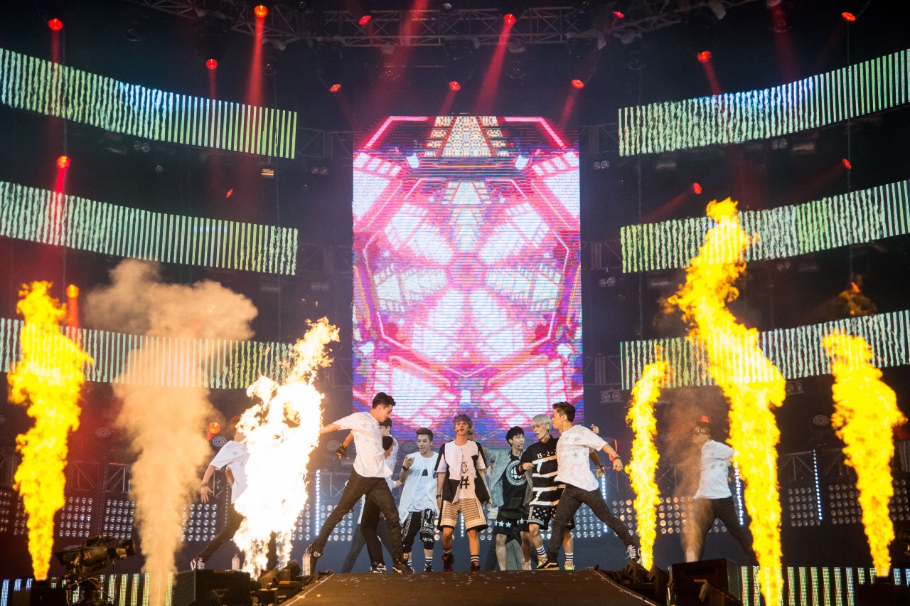 During the performance of Boy Republic’s remix of “Video Game”, 15-second mobile phone clips that were posted on Instagram with the #worldstagemyfancam were featured on the screens. A lucky fangirl, who was chosen to become their “girlfriennd” was unveiled during the performance for “Dress Up” as well, leaving the audience screaming with jealousy. Towards the end of their set, the group once again hyped up the crowd with the fan favourite, “Party Rock”.