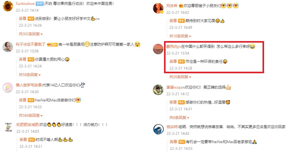 Some netizens praised his decisive action, welcoming him to China. Others were amazed by the number of suitcases he had. “You can buy everything in China,” one comment pointed out. “Why did you bring so much luggage?” The actor replied that his family wanted to be thrifty. Additionally, they wanted to be environmentally responsible.