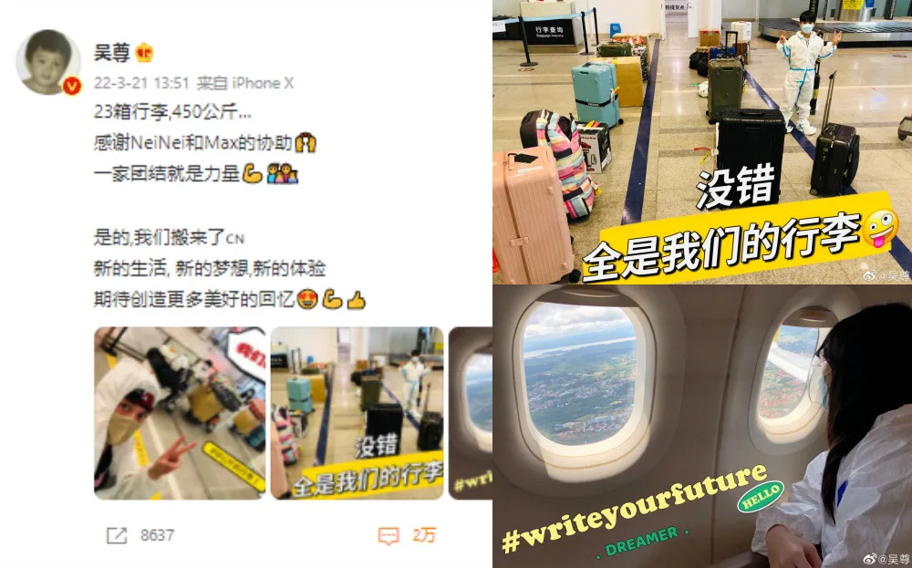 On 21st March, the actor announced his move on Weibo. “23 cases of luggage, 450kg,” Wu Chun sighed. “Thanks to Nei Nei and Max (his children) for their assistance. Family unity is strength.” He stated that they had indeed made the move to China for a new life, new dreams and new experiences. “Looking forward to creating more good memories,” Wu Chun added.