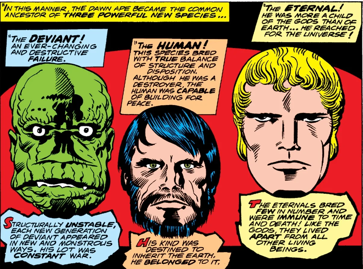 Then there is the subrace of the Deviants. Genetically unstable creatures that varied wildly in physique and structure. Some of them have scaly skin. Some of them have strange appendages. The only thing these creatures have in common is that they look nothing like the Eternals or early humans.