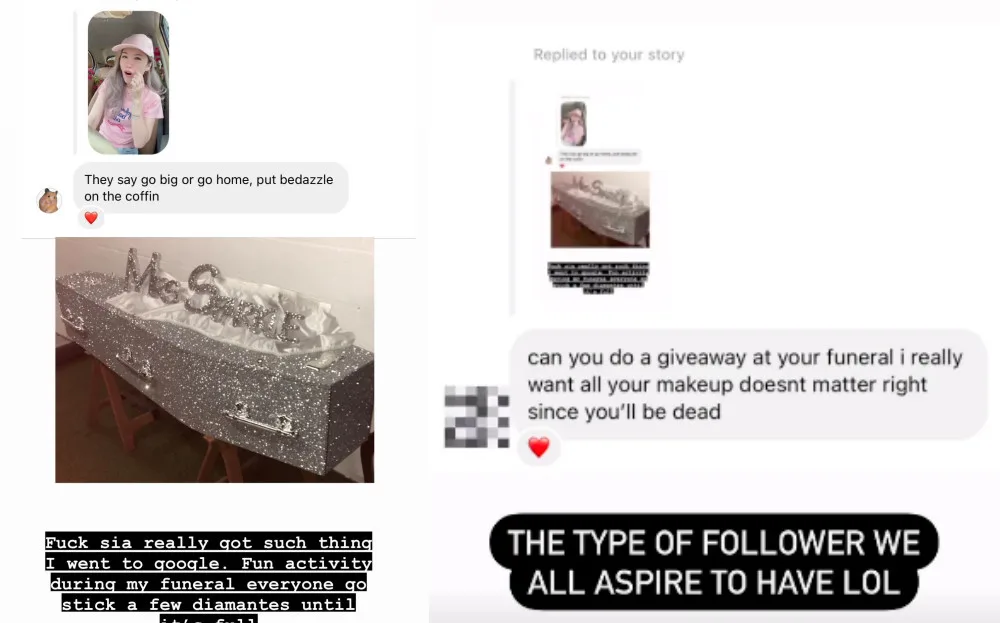 XiaXue eventually got a second dose and got a suggestion from a follower to bedazzle her coffin. Another even asked, “Can you do a giveaway at your funeral? I really want all your makeup. Doesn’t matter right, since you’ll be dead?” We’re not sure if XiaXue was offended or amused by the question, but she commented, “The type of follower we all aspire to have. Lol.”