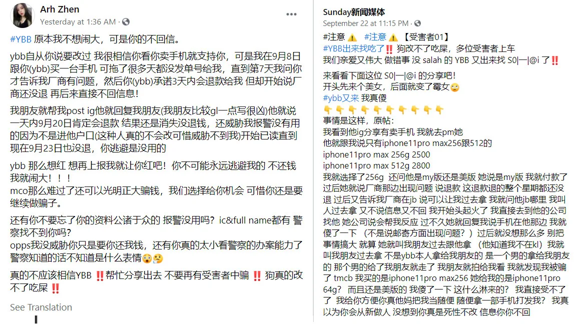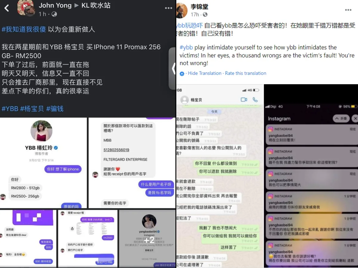 The victims took to Facebook to call out the YouTuber and warn people that YBB was falling back to her old ways. One victim, Arh Zhen, explained she had believed in YBB’s change and didn’t mind supporting her. Hence, she bought an iPhone from her earlier this month.