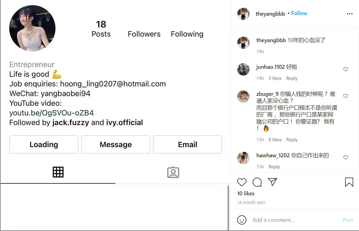 Yesterday (23d September), several netizens accused YBB of her old ways again. According to them, YBB had cheated them of iPhones. The accusations quickly went viral and has caused YBB to delete her old Instagram account.