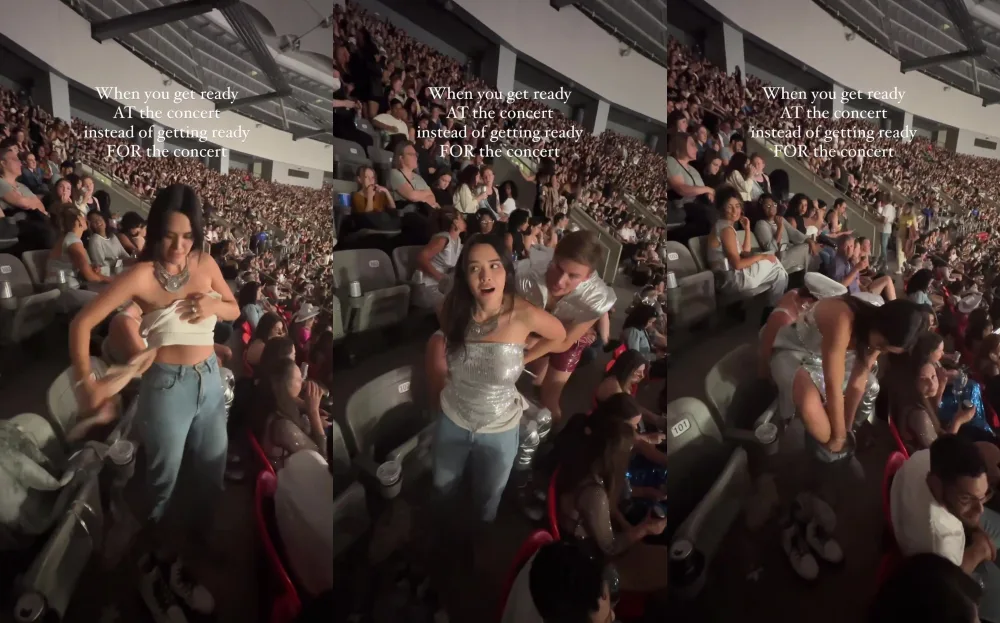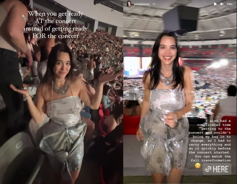 The crowd paid little to no attention to Yasmine as she changed and when she was done, she gave the camera a gleeful and surprised grin, before finishing the final touches of her outfit, such as her jewelry and adding some light makeup. “When you get ready at the concert instead of getting ready for the concert,” she cheekily captioned in her video.