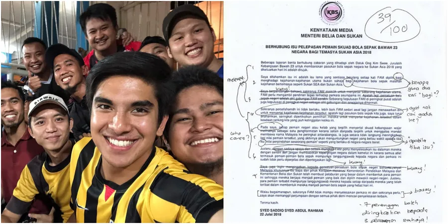 Youth and Sports Minister Syed Saddiq recently released a media statement regarding the release of FAM players for the 2018 Asian Games.