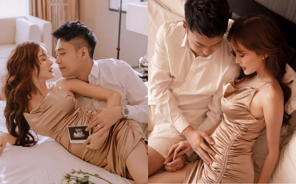 The influencer showed off photos of her and her husband lying in bed, looking intimate. He was dressed in a white shirt while she wore a thin strapped dress. However, what drew attention was the small photo of an ultrasound which they held in their hands.