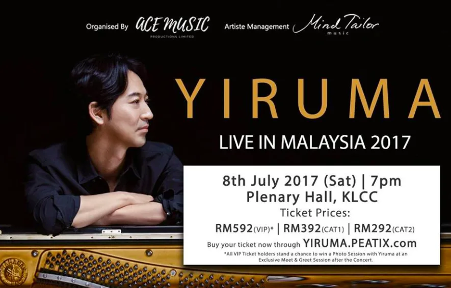 Presented and organised by Ace Music Productions, details for “Yiruma Live in Malaysia 2017” are as follows: