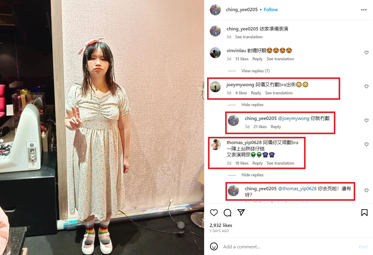“Ah Yi did not wear a bra but (went out) to the street (anyway),” one comment read. Another joked that her not wearing a bra could cause embarrassment again. Needless to say, Yeng Yi did not take kindly to the comments. “You’re not wearing one,” she snidely told a netizen while retorting to another, “You (can) go and die!”
