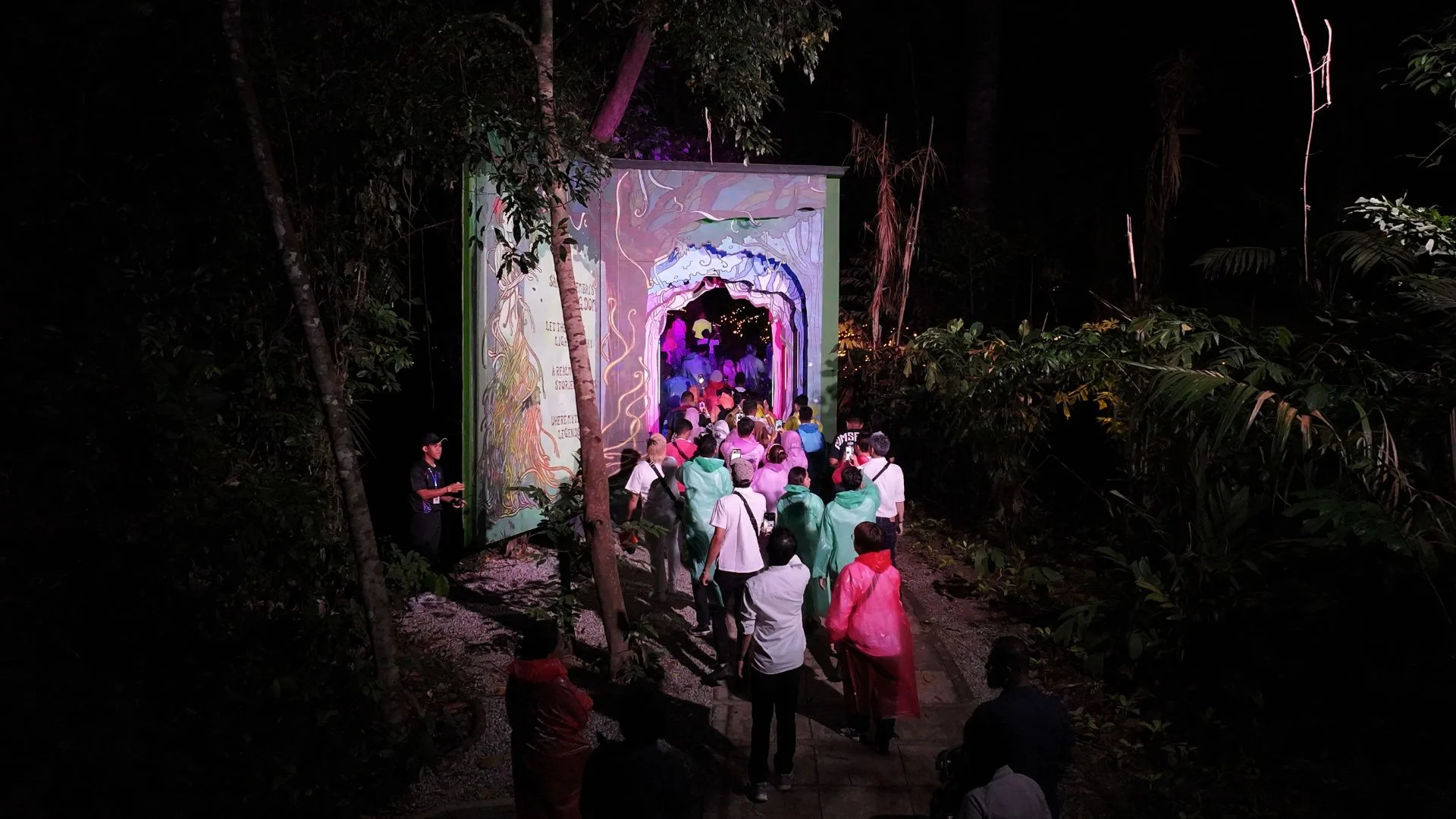 As you wander deeper, tropical vistas come alive with captivating lighting, projection mapping, and enchanting soundscapes. Each step along the 1.2-kilometer path unveils new wonders, guided by the enchanting music and narrative of Datin Seri Tiara Jacquelina.