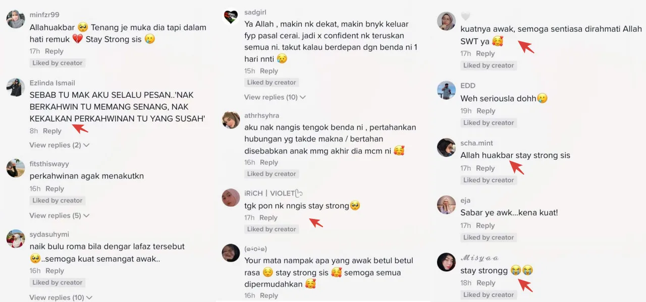 The comments section was flooded with several remarks by netizens on TikTok, who were mostly disheartened by what Aziah had experienced. Apart from asking the woman to stay strong in her new chapter, others also left warm prayers for her to be able to find her true soulmate one fine day.