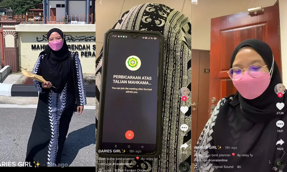 In the video, Aziah was seen attending an online divorce session which took place at the Seberang Perai Selatan District Syariah Subordinate Court in Penang. Clad in a black robe and scarf, the 22-year-old sat quietly in an office at the court, before hearing her husband’s voice pronouncing the divorce.