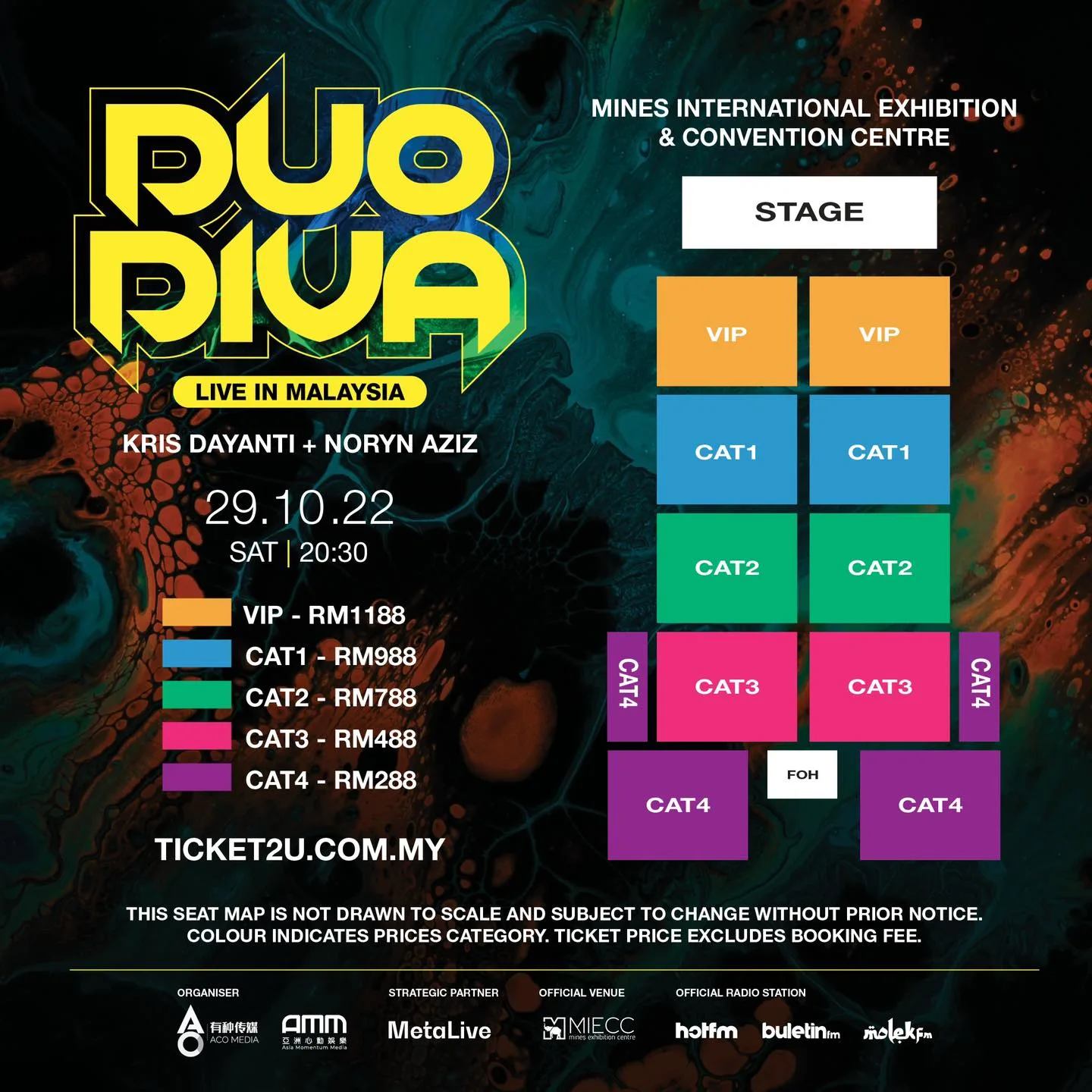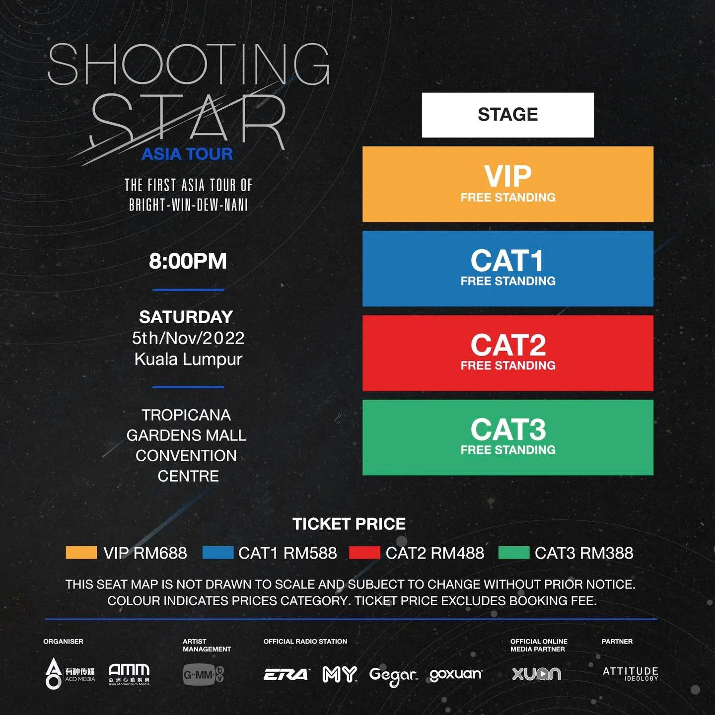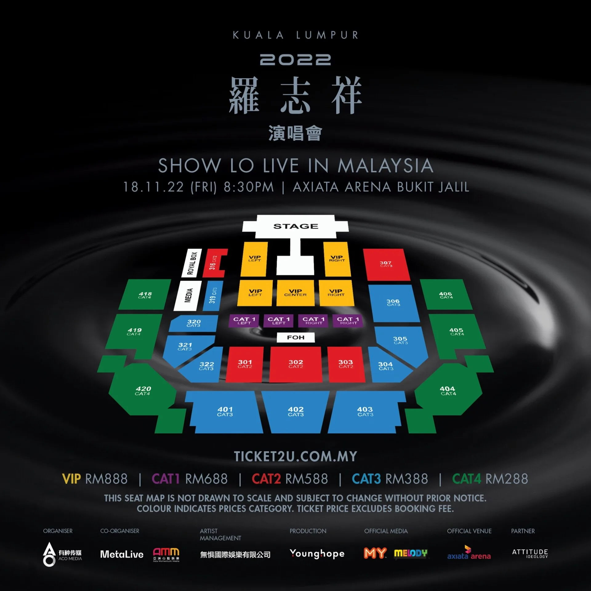 - Ticket Prices: RM 888 (VIP), RM 688 (CAT1), RM 588 (CAT2), RM 388 (CAT3), RM 288 (CAT4)