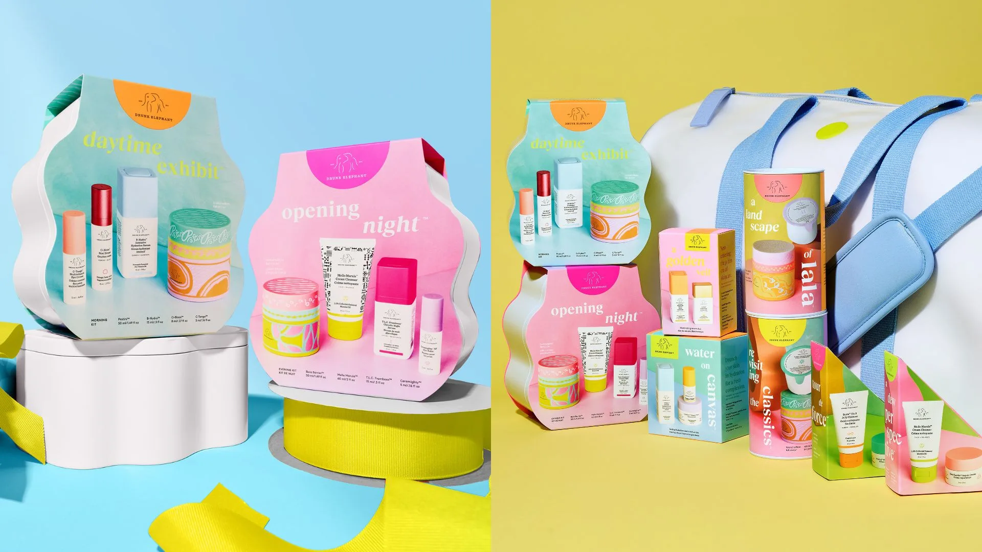 Get your glow on with Drunk Elephant’s Opening Night Evening Kit, a curated ritual to cleanse, brighten and hydrate before stepping out. Inside you’ll find: