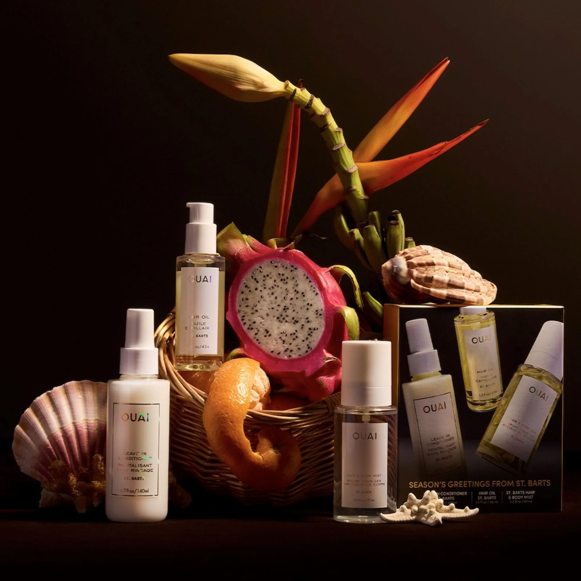 Transport yourself (or someone special) to a tropical escape with OUAI’s Season’s Greetings From St. Barts Trio. The set includes: