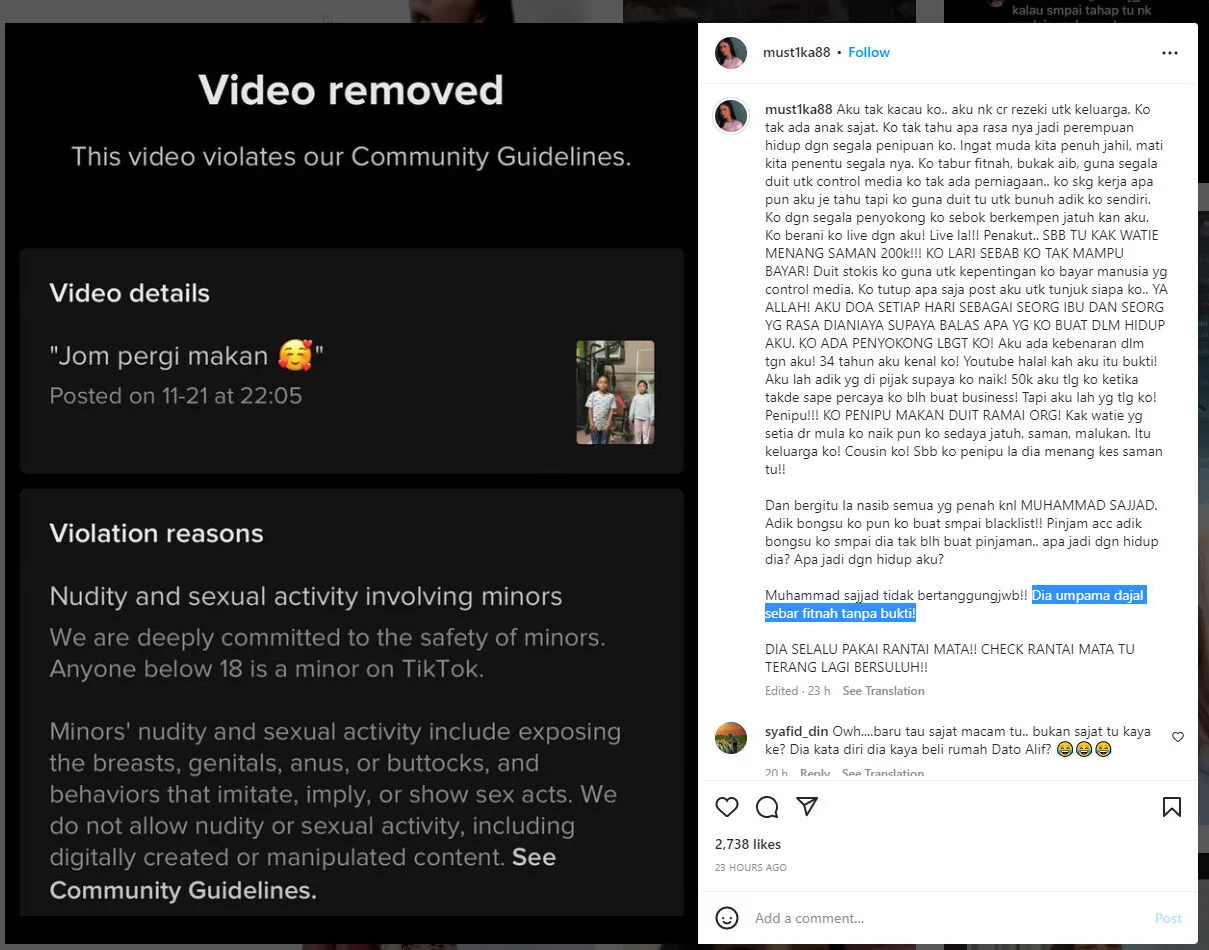 So, Nur Mustika had posted a seemingly normal video of her dancing with a couple of kids but was taken down due to “nudity and sexual activity involving minors”. This incident (which she thinks Sajat had something to do with) made her burst into outrage, exposing many details of the entrepreneur’s previous life as Muhammad Sajjad.