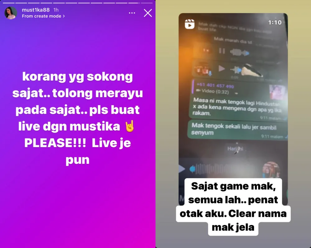 Among the many accusations, Mustika also claimed that Sajat had apparently paid a huge sum of money to cover up news from the press repeatedly. In the caption, she wrote, “OH GOD! I PRAY EVERY DAY AS A MOTHER AND AS SOMEONE WHO IS MISTREATED, TO PAY BACK WHAT YOU DID TO MY LIFE.”