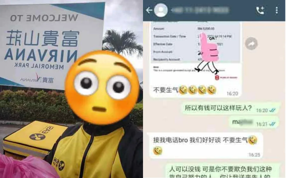 This food delivery rider took to the internet to air his grievances after realising he’d been pranked. According to the screenshots uploaded by the rider, he’d gotten his order on 22nd October around 3:50pm. He was supposed to deliver food to someone named Guo at a certain location, near Semenyih. Upon arrival however, he discovered he was in fact delivering food to Nirvana Memorial Park, a cemetery.