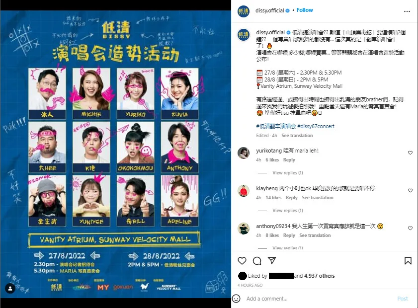 And now, the two groups have decided to hold their own concerts. According to DISSY, they will be having their first official concert on 1st January 2023. The concert titled “Rollover Concert (翻车演唱会)” will feature musicians from their group such as Klay Heng aka Klou (K佬, Lay Kar Heng) who went viral with his “山頂黑毒蛇” in 2020.