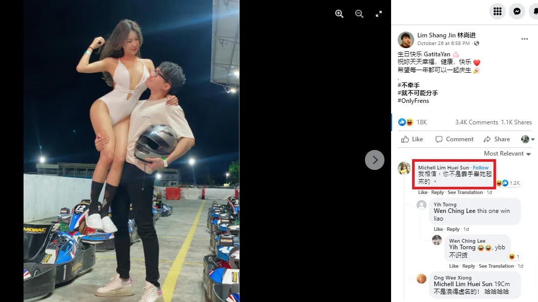 While others celebrated their relationship, another netizen brought up Lim’s ex. “Once, you said that you’d end up with another (person),” they commented. A photo of Lim carrying Qiu Wen the exact same way on her birthday was added.
