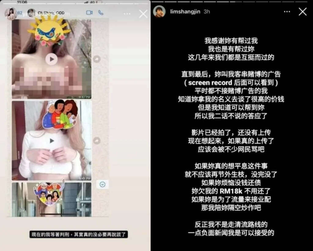 YouTubers Yang Bao Bei (Kalysta, 杨宝贝) and Lim Shangjin (林尚进) have been feuding since the end of May. Their interactions which mostly took place on Instagram, revolved around several issues. The main one being YBB accusing Lim of sexual harassment.