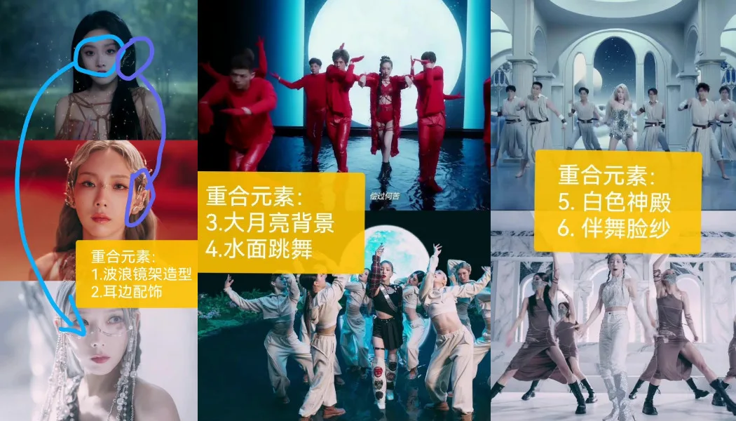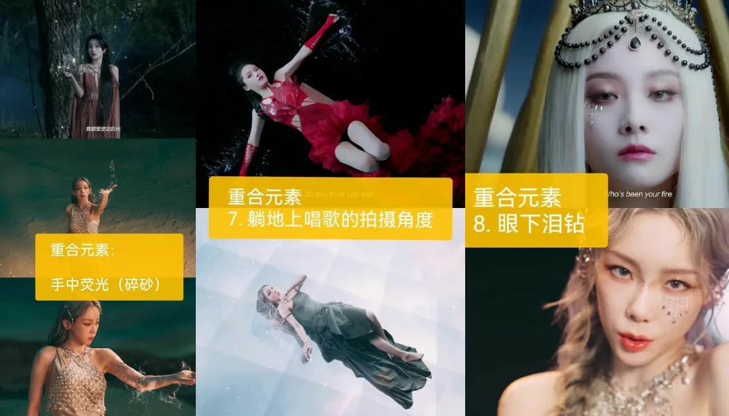 In addition, there’s also a scene featuring the former THE9 member with backup dancers, with their feet submerged in the water. In the “INVU” MV, Taeyeon can also be spotted doing something similar. Besides the settings, netizens also pointed out that their styling in both of their videos look similar to each other. As seen in one of the screenshots posted online, both Yu Yan and Taeyeon can be seen sporting similar rhinestone eye makeup look.