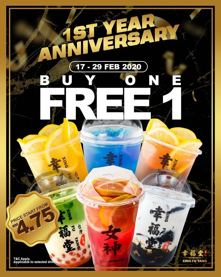 Xing Fu Tang’s 1-year anniversary promo has been going on since last week. The Buy 1 Free 1 offer is valid for the following drinks: