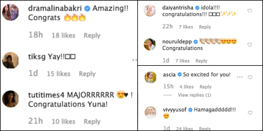 Her comments section has been flooded with various congratulatory messages from her fans as well as fellow public figures including Vivy Yusof, Daiyan Trisha, Nourul Depp, Tuti and also Dr. Amalina Bakri.