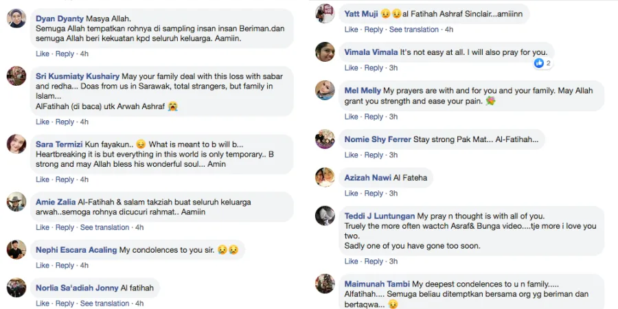 Many of Pak Mat’s friends and followers (regardless of race and religion) left uplifting comments in response to his heartfelt write-up online. They shared their prayers and condolences to him and his family members. It was also was reposted on Twitter by a user known as @faridbahrudin.