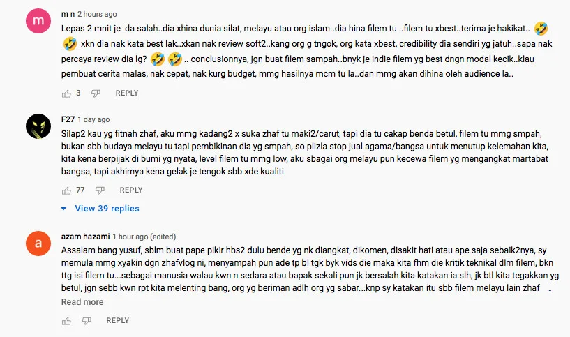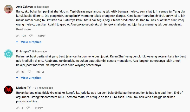 However, many netizens believed that Yusuf was personally attacking Zhaf for sharing his honest thoughts on the film. In this case, they felt that Zhaf was actually criticising the film’s cinematic technique, and not slamming the silat martial arts or even the Malay race, as claimed by the former.