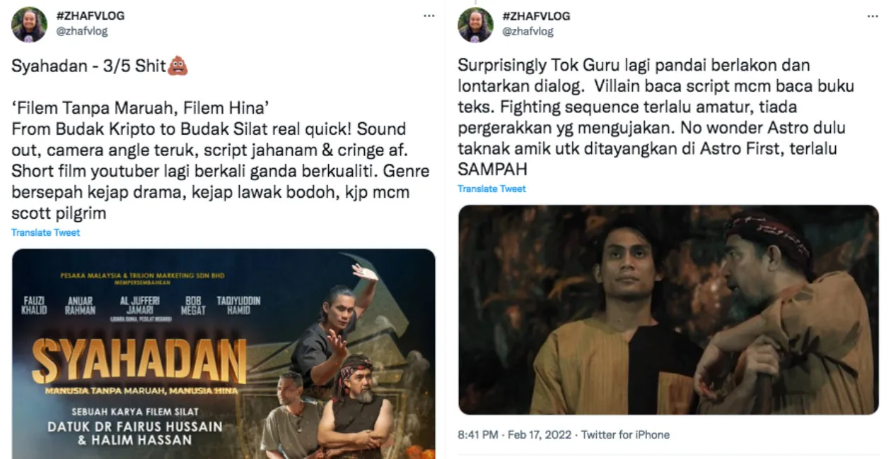 Taking to his Twitter earlier on Thursday (17th February, same day as the film’s premier date), the popular movie critique had described “Syahadan” as a “Movie without dignity, and also a film of contempt.” As if the criticisms weren’t enough, he also gave a “3 out of 5” rating with a shit emoji!