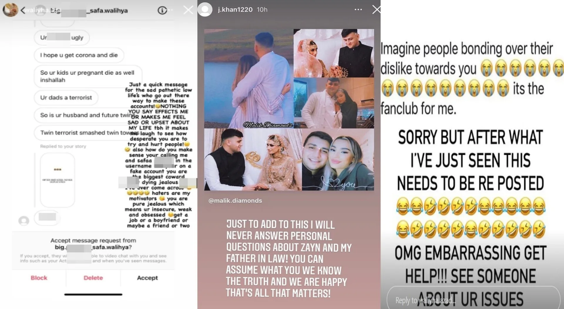 Zayn Malik’s younger sister Waliyha Malik was recently the target of online trolling. Her husband Junaid Khan has also been subjected to online harassment. Insults such as death threats and name-calling were hurled towards the 22-year-old. For Junaid, it was merely a death threat directed at both him and his child Zaneyah.