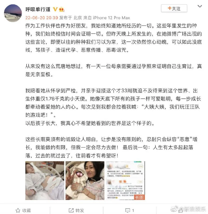 However, it seems they went too far, according to Bichen’s friend. Bichen’s friend, who is also the deputy general manager of Huayi Music made a post yesterday to combat the rumours. They were very upset that Bichen’s past was coming back to haunt her although it was long over. “It’s absurd to think that a mother would one day need to prove that she has given birth through a pregnancy photo,” they remarked.