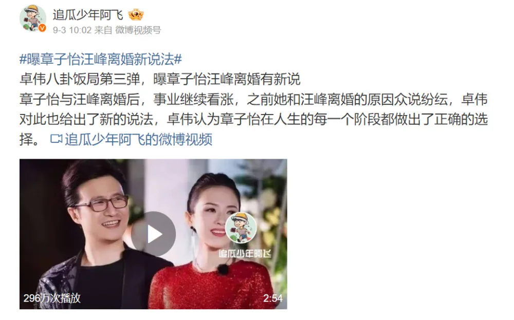 Recently, Chinese social media has been buzzing about a video posted by a celebrity blogger, which talks about the real reason for Zhang Ziyi and Wang Feng’s divorce. The blogger alleges that the information was from Zhuo Wei (卓伟), a paparazzo well-known for having insider knowledge of Chinese celebs. According to the video, Zhuo Wei claimed that the two stars did indeed divorce because Wang Feng was cheating.