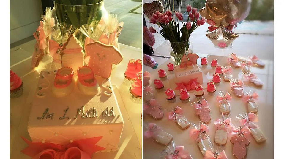 The first-time mum also shared photos of Xing Xing’s pink birthday cake (with decorations of a ribbon bow, a pair of shoes, a baby bottle, and a cute baby cloth) surrounded by pink cupcakes as well as adorable snacks she had prepared for her daughter’s birthday party. Yum!