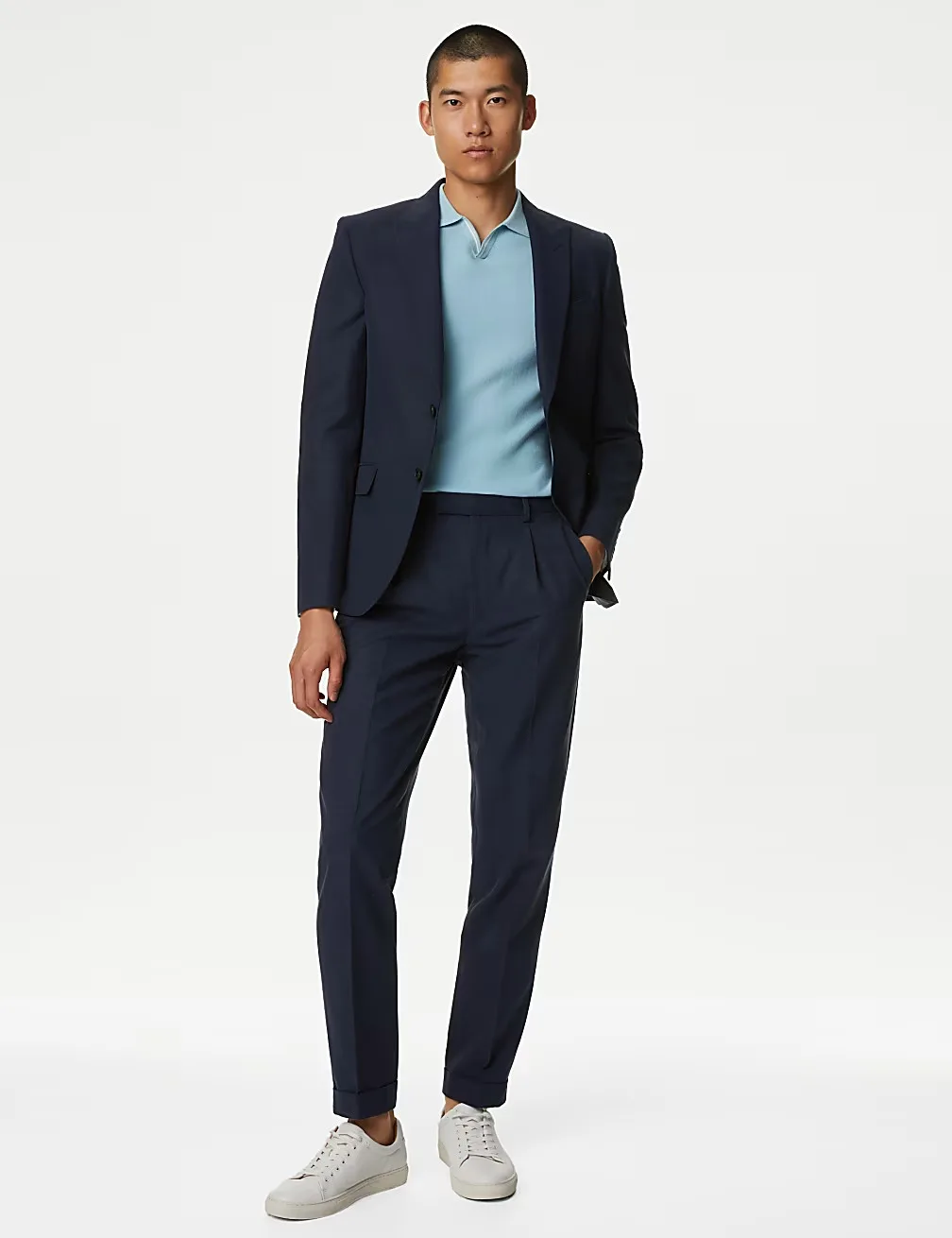 Step up your smart ensemble with these cotton-rich trousers from Marks & Spencer’s Autograph collection. Tailored for sophistication, they feature a split waistband fastened with a neat hook, bar, and zip. Front pleats enhance mobility, while the smooth lining ensures comfort. Finished with turn-up hems and jetted pockets for a polished look. Pair them effortlessly with the matching jacket.