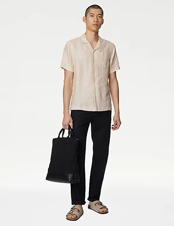 Stay cool and stylish with this lightweight pure linen shirt, ideal for warm evenings whether at home or abroad. Its easy regular fit and smart revere collar lend a relaxed yet refined look, complemented by a classic button fastening for effortless wear. The moisture-wicking fabric ensures comfort by keeping you dry.