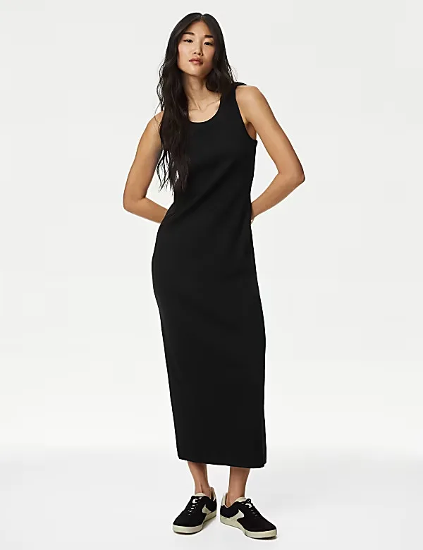 Cotton Rich Ribbed Midi Bodycon Dress