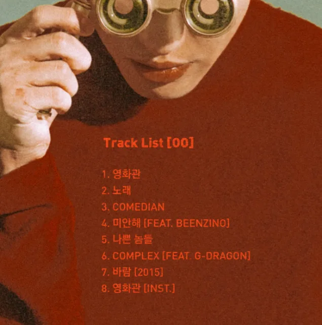 The album contains 8 tracks including “Cinema” (영화관), “Song” (노래), “Comedian”, “I’m Sorry” (미안해) featuring Beenzino, “Bad Guys” (나쁜 놈들), “Complex” featuring BIGBANG’s G-Dragon, and “Wind [2015]”. It is speculated that his title track will be “Cinema” as it is the only song that has an instrumental version in the album.