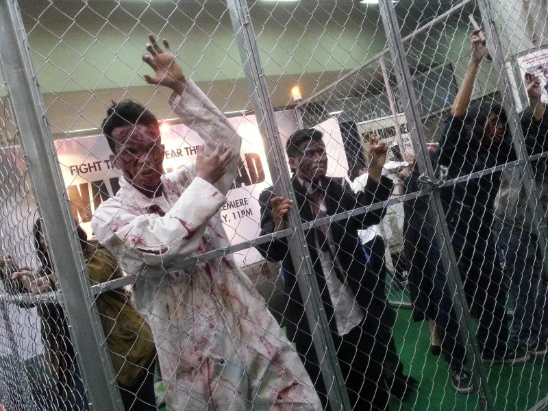 Late yesterday, zombies aka “walkers” haunted the streets of our city; making appearances at Sungei Wang, Lot 10, and Pavilion KL, exciting and shocking most pedestrians. The zombies also made an appearance at KL Sentral Transit Concourse, and we were there! Our team got up close and personal with the bloody, gruesome, and horrifying-looking ones. Were they scary? Yes.
