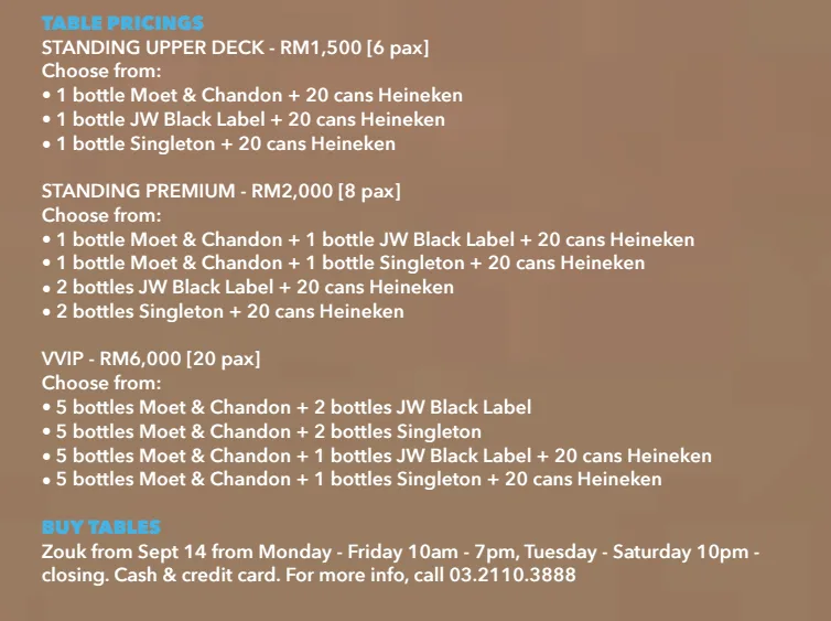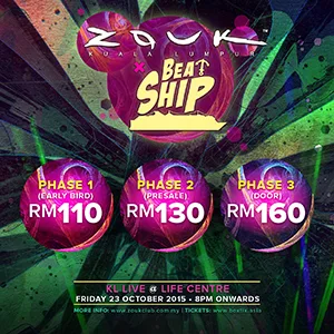 * Tickets will also be made available for purchase at Zouk KL from 14th September onwards.