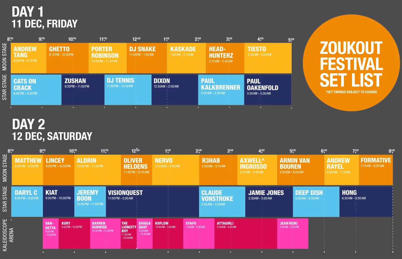The ZoukOut 2015 schedule has been released! Keep this one with you at all times and do some “party planning” so that you won’t miss out on the sets 🙂