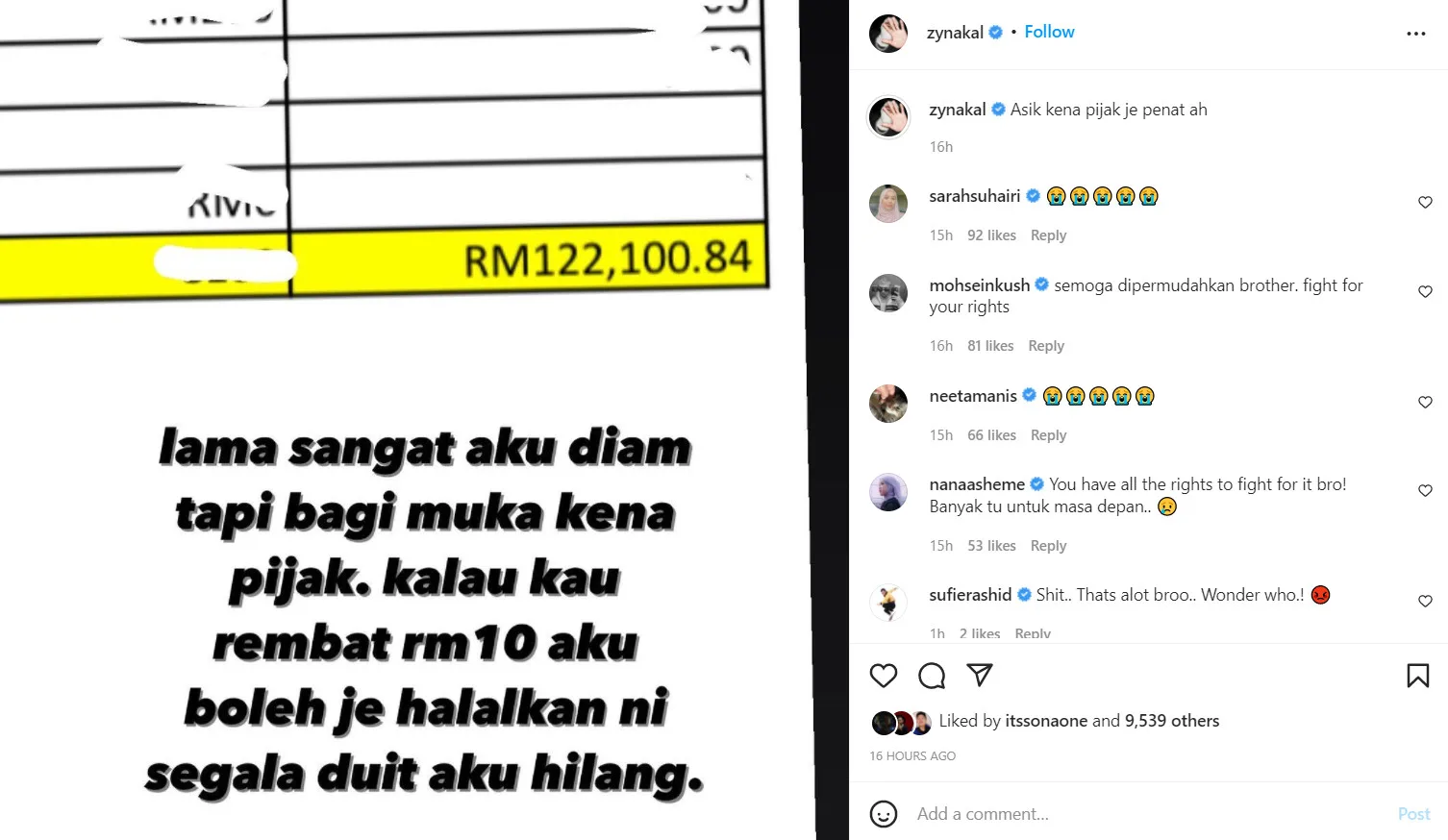 “I’m tired of getting stepped on. I’ve been silent all this time but no more. When I showed them kindness, they took advantage of me. I’m totally fine if it’s just RM10, but all of my cash has disappeared. Should I expose the people who stole my money?” the “Sakit” hit-maker captioned his post.